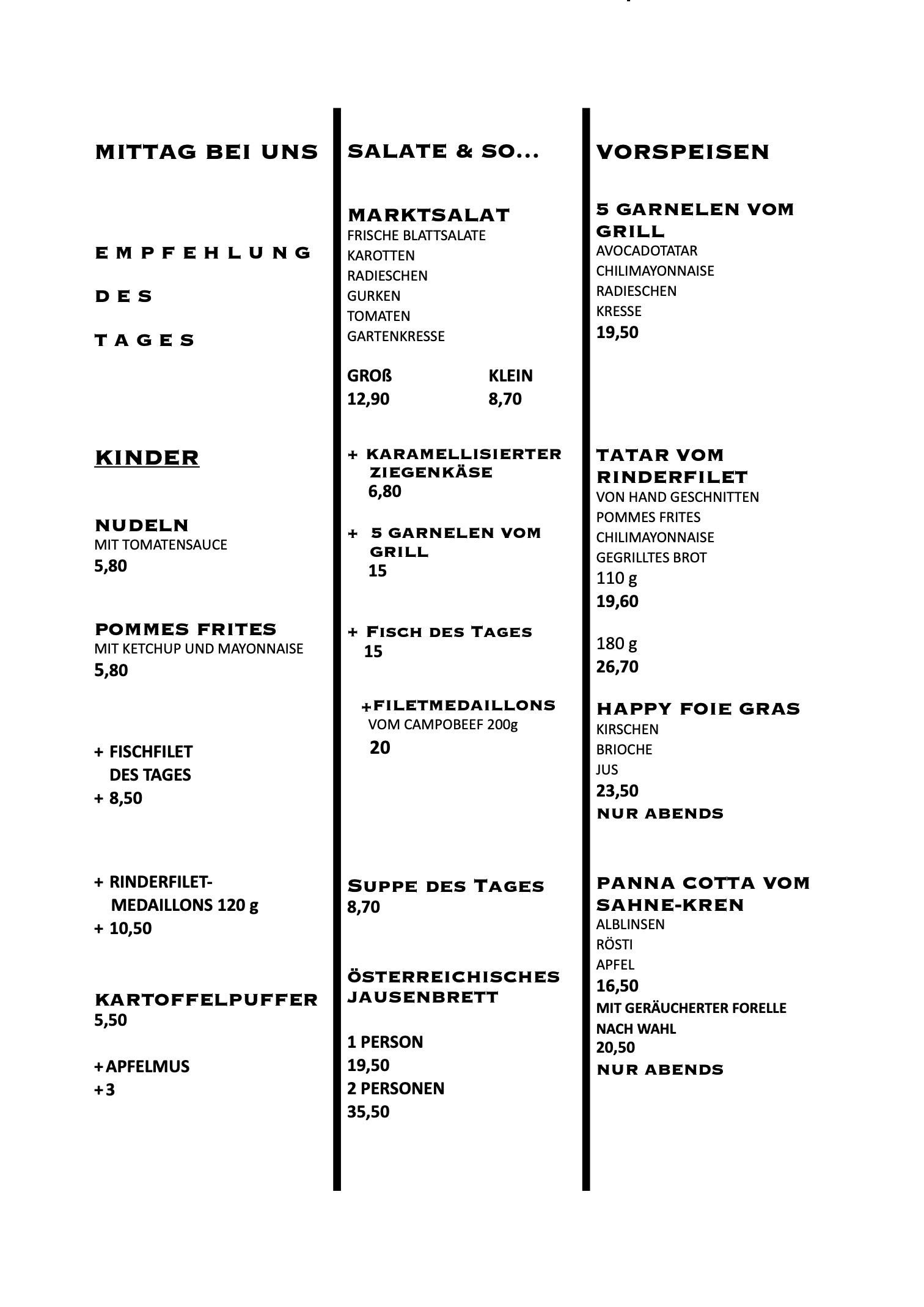 Kosten und schmecken Sie sich durch unsere Abendkarte: